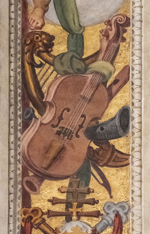 Bernardino Gatti - Tela (1572/1573). Pala Altare maggiore. Assunzione della Vergine in cielo Liuto, cetra-lira classica (teatrale), viola da braccio, cornetto a bocchino È un concerto angelico che accoglie la Vergine Maria nel Paradiso. Una...