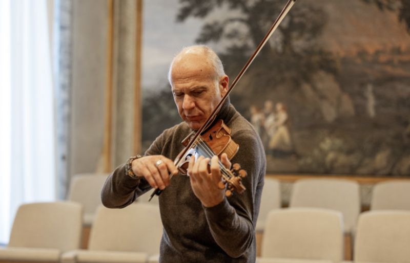 In questi giorni di masterclass, abbiamo visto il Maestro guidare i giovani talenti con un metodo che fonde rigore tecnico e una profonda ricerca della cantabilità italiana. Dalle sue indicazioni è emerso non solo la cura per la perfezione esecutiva, ma una vera e propria missione didattica: trasmettere quell’energia e quella visione interpretativa necessarie per affrontare i grandi palcoscenici. Al centro della splendida sala affrescata l’allieva, accompagnata al pianoforte dalla bravissima Stefania Redaelli, esegue e ascolta concentrata gli interventi del Maestro: “non si suona con le dita!”, la apostrofa con veemenza Massimo Quarta. Il paradosso apparente di questa frase è la cifra della ‘lezione’; sul leggio uno spartito di Prokof’ev. Il Maestro conduce la lezione con il violino quasi sempre tra le mani, in un connubio strettissimo tra ciò che dice e ciò che suona. Le osservazioni sono puntuali e si susseguono incalzanti in un flusso ininterrotto, spaziando tra indicazioni sulle dinamiche e le agogiche, consigli sul fraseggio più opportuno e sui punti d’arco adatti per ottenere l’effetto desiderato. Ogni passo è scandagliato nei più infinitesimi dettagli. L’allieva è brillante, reagisce con rapidità a ogni suggerimento, la sua mano sfarfalla sul manico come nel famoso quadro di Balla: azione-reazione, così si costruisce la perfezione. Un’altra allieva si avvicenda – sul leggio adesso c’è il concerto di Mendelssohn: si entra subito nel vivo della lezione. L’attitudine del Maestro è maieutica: suggerisce ma non impone; analizza il testo musicale e definisce i problemi, e guidando passo dopo passo l’allievo lo conduce alla realizzazione del risultato. “Le arcate sono uno strumento a disposizione per suonare meglio ciò che c’è scritto”: ogni errore è il pretesto per estrapolare regole generali, soluzioni intelligenti per realizzare al meglio il dettato del compositore: tutto è regolato e informato dal logos. Si parla di tecnica, ma anche di rapporto tra solista e direttore, di genesi dell’opera, di manoscritti autografi. Quarta insegna, guida, sprona, corregge, ma nel contempo accende la curiosità nei giovani musicisti. E tutto quello che spiega a parole prende vita tra le sue mani quando fa sentire all’allievo come deve essere, ma senza mai chiedere di imitare semplicemente: il Maestro pretende che quello che spiega venga assimilato. “Ascolta ma non copiare!”: l’allieva reagisce modificando con prontezza l’enunciazione del passaggio. “Ci sono cose che non riescono perché non le sappiamo fare e cose che invece non riescono solo perché non ci abbiamo pensato”. Insegnare un metodo di studio è la cosa più difficile e Quarta è bravissimo a farlo. Le tremende ottave della prima pagina del concerto di Mendelssohn vengono smontate e ricostruite, a partire dalla posizione della mano e di ogni singolo dito. Quarta parla del concetto di limite, dell’importanza di superare il limite stesso per acquisire una completa padronanza della partitura in ogni situazione. Nelle sue spiegazioni confluisce l’esperienza del concertista insieme alla generosità del bravo didatta. “Fare e disfare, è tutto un lavorare” scriveva il poeta Dino Campana: Quarta rimarca il fatto di quanto sia sbagliato continuare a rifare senza ragionare e risolvere il problema, ma con lui come mentore si può essere sicuri che questo non succederà.