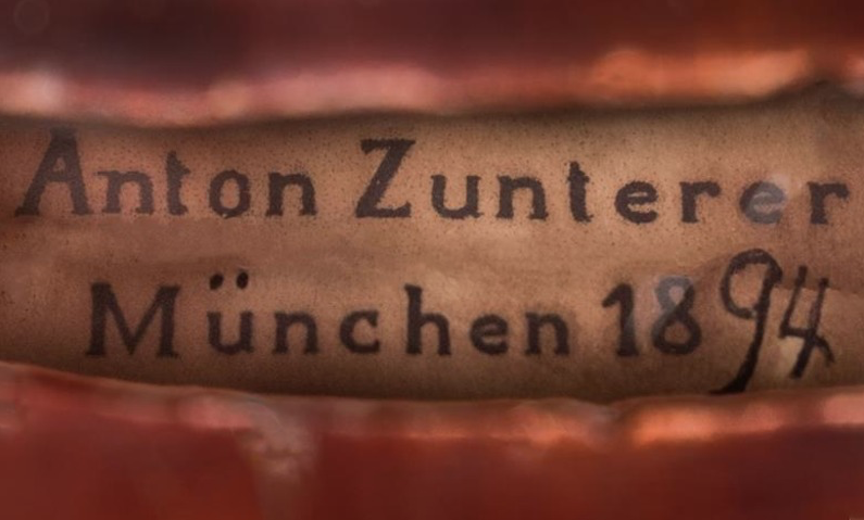 Il violino in questione fu realizzato da Anton Zunterer nel 1894 e reca l'etichetta "Anton Zunterer, Monaco di Baviera 1894". Einstein incise la parola "Lina" – il suo soprannome per lo strumento, abbreviazione di "Violina" – sul fondo del violino e lo suonò fin prima di partire per gli Stati Uniti nel 1932 e lo donò al suo amico Max von Laue. Da questi passò a Margarete Hommrich, la cui pronipote lo ha messo in vendita.