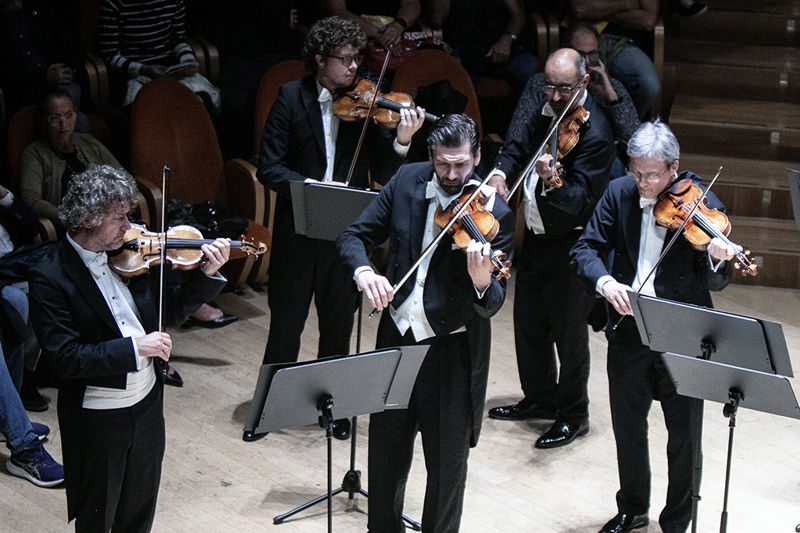 L’ Allegretto moderato poco rubato ha messo in evidenza la sorprendente precisione e pulizia delle sezioni nei passi di agilità che si rincorrevano tra pizzicati e balzati di un nitore eccezionale. Effetti al ponticello, chiaroscuri con le sordine, aspri timbri al ponticello: tutta la gamma delle possibilità timbriche è stata esplorata da questi caleidoscopici musicisti.